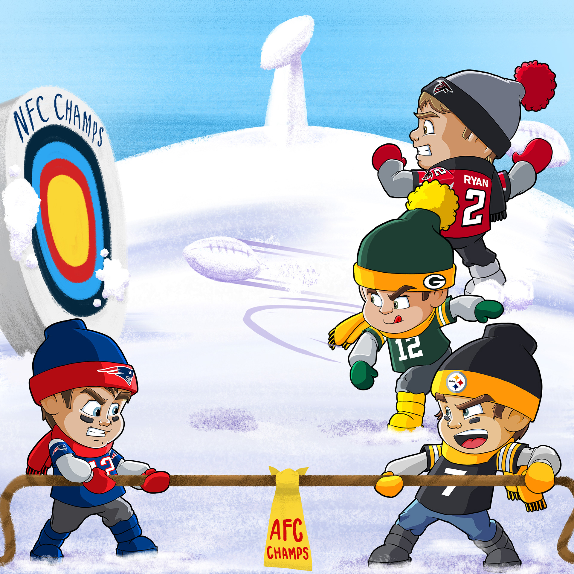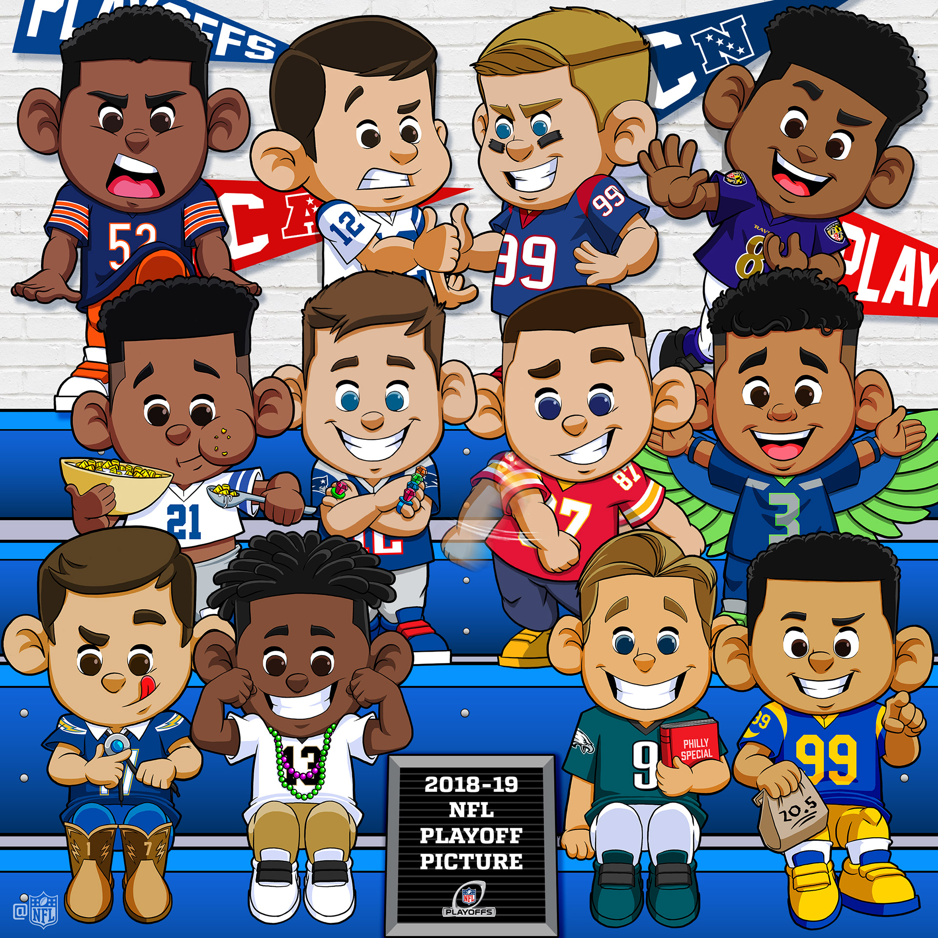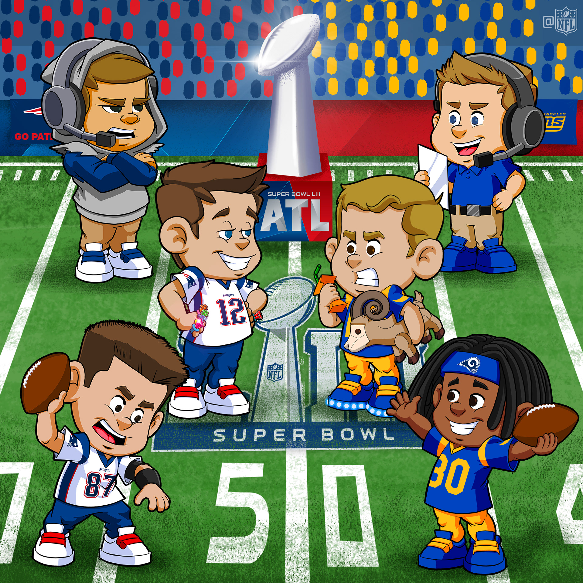 A small series I created for NFL's social media content. These were mainly used for holidays and big events such as the NFL Draft and Super Bowl. Your favorite players in jr. form done in my style. Enjoy!